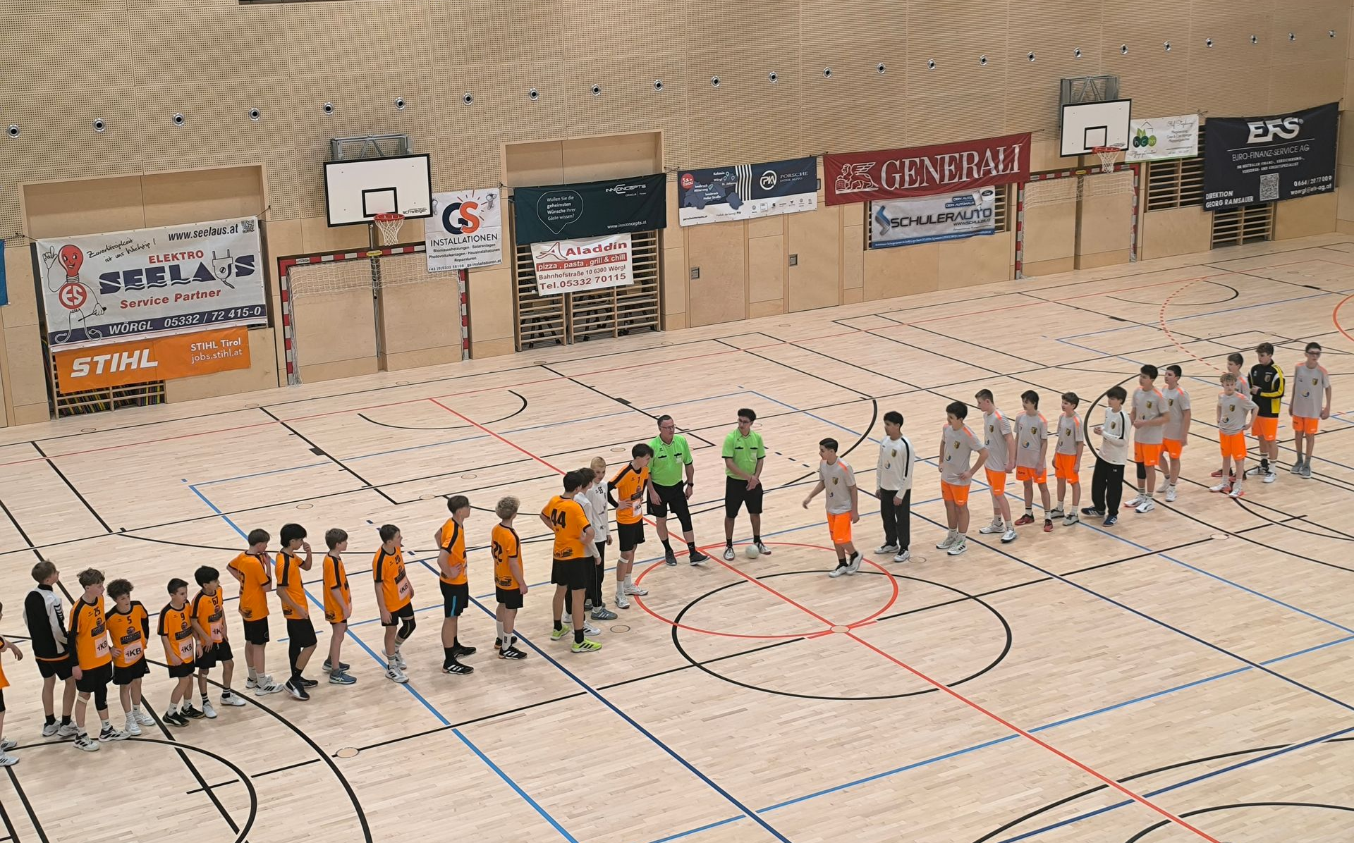Nichts für schwache Nerven waren die beiden Spiele unserer Jungs am Samstag den 21.02.2026 beim 3. Spieltag der MU14 Tiroler Meisterschaft. Im ersten Spiel gegen den Mannschaft von HIT Innsbruck I brauchten die jungen Männer von Coach Erkut einige Zeit bis sie ins Spiel fanden Erst in der 15. Minute konnten die Löwen das erste Mal in diesem Spiel mit 9 : 8 in Führung gehen. Mit einer guten Phase - vor allem unser Torhüter Sasa erwischte heute einen ganz starken Tag - wurde der Vorsprung bis zur Pause nach 20 Minuten auf 15 : 11 ausgebaut. Auch zu Beginn der zweiten Hälfte konnte der Vorsprung auf bis zu sechs Tore ausgebaut werden, dann machten sich die Jungs allerdings selbst das Leben schwer. Viele Unkonzentriertheiten und Fehlwürfe im Angriff ließen die Innsbrucker Tor um Tor aufholen. Vier Minuten vor dem Ende gelang den Gästen der Anschlusstreffern zum 26 : 25 bzw. zum 27 : 26, doch wieder war es Sasa der mit drei tollen Paraden den 28 : 26 Sieg sicherstellte. Beste Werfer: Rafael (10 Tore) und Dragan (7 Tore); Auch im zweiten Spiel gegen den UHC Absam ein sehr ähnlicher Spielverlauf. Auch in diesem Spiel kein guter Start in das Spiel, erst in der 13. Minute die erste Führung (8 : 7) für die Löwen, diesmal ging es mit einer knappen 12 : 11 Führung nach 20 Minuten in die Kabinen. Nach dem Wechsel die Jungs zwar sehr bemüht, Kampfgeist und Moral waren zu 100% vorhanden, jedoch wieder viel zu viele Fehler in der Abwehr und unzählige Fehlwürfe im Angriffsspiel. So wurden die jungen Herren 10 Minuten vor dem Ende mit einem 17 : 18 Rückstand konfrontiert, zwei Minuten vor dem Ende 21 : 21 der Spielstand, Dragan konnte 90 Sekunden vor dem Ende den Siegestreffern zum 22 : 21 erzielen, und wieder war es in diesem Spiel unser heute glänzend aufgelegter Torhüter Sasa der mit unzähligen Paraden maßgeblichen Anteil an den beiden Siegen hatte. Beste Werfer: Dragan (7 Tore), Kiyan, Nico und Philipp (je 3 Tore); Mit diesen beiden hart erkämpften Siegen bleiben die Jungs im Rennen um den Titel in der MU14. Am Sonntag den 22.03.2026 fällt im Rückspiel gegen das ULZ Schwaz die Vorentscheidung um den Tiroler Meister-Titel. Bravo Jungs, die Richtung stimmt, Gratulation zu vier ganz wichtigen Punkten!