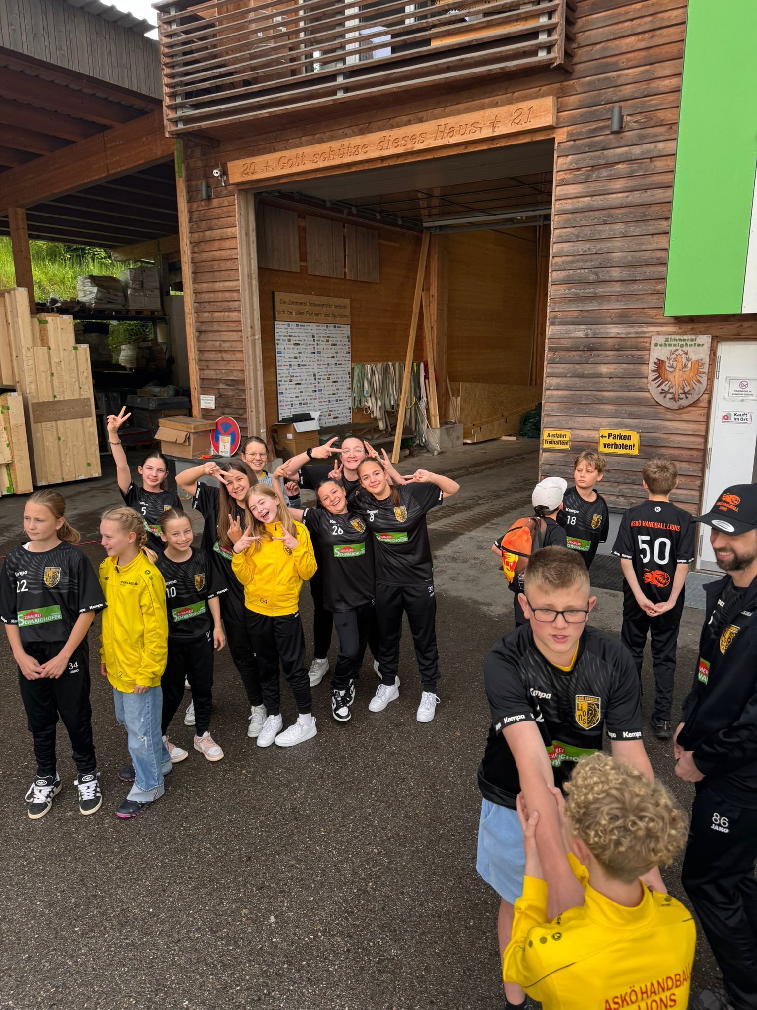 Anstatt Training gab es für die Mixed U12 am Montag den 26.05.2025 einen Ausflug nach Erl, genauer gesagt zur Firma Zimmerei Schwaighofer GmbH. Unsere frisch gebackenen Tiroler Meister besuchten Geschäftsführer Andreas Schwaighofer um sich für die neuen Trikots die wir im März erhalten haben persönlich zu bedanken. Natürlich durfte ein Foto auf dem Firmengelände mit den tollen Dressen nicht fehlen.